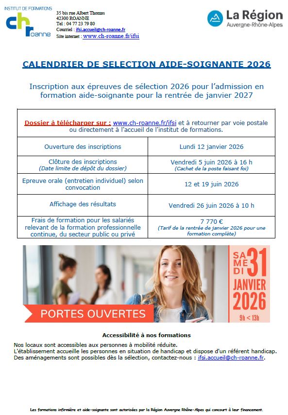 Sélection aide-soignante: calendrier de sélection, rentrée janvier 2027